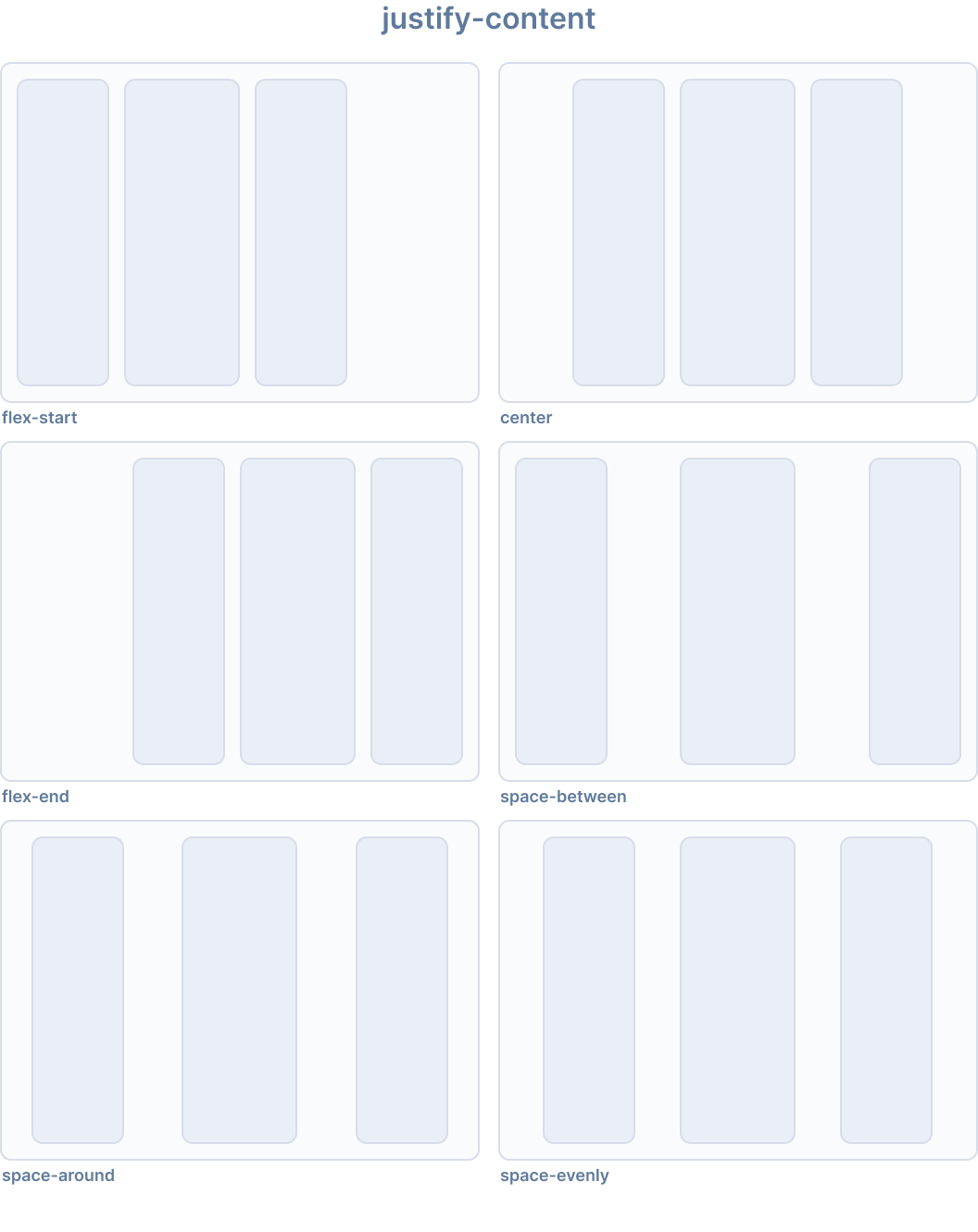 以下の表は、デフォルトの動作を示しています。{property}は次のいずれかです:justify-contentalign-contentalign-itemsflex、またはflex-wrap{modifier}は上記で説明されている対応する値です。